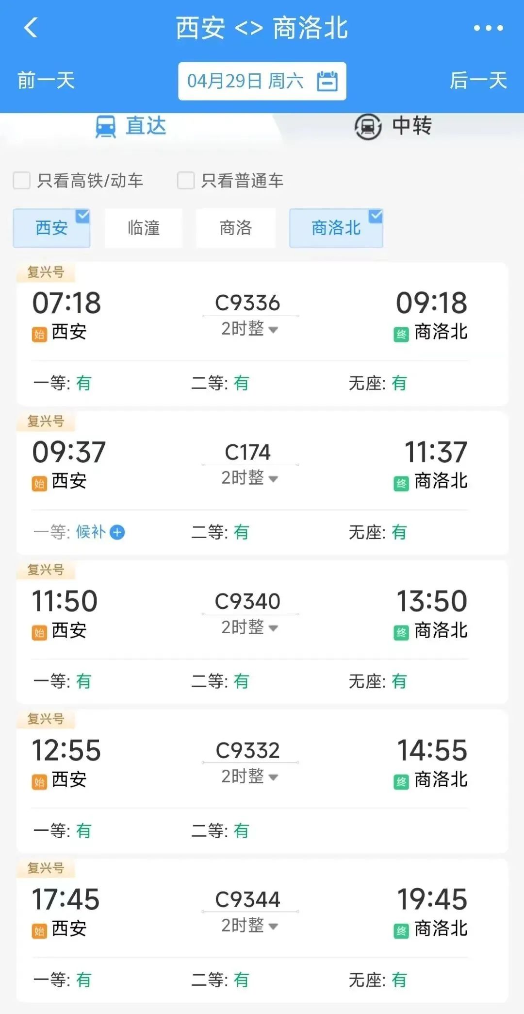 西安07:18开