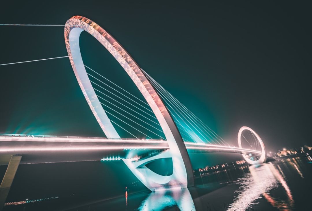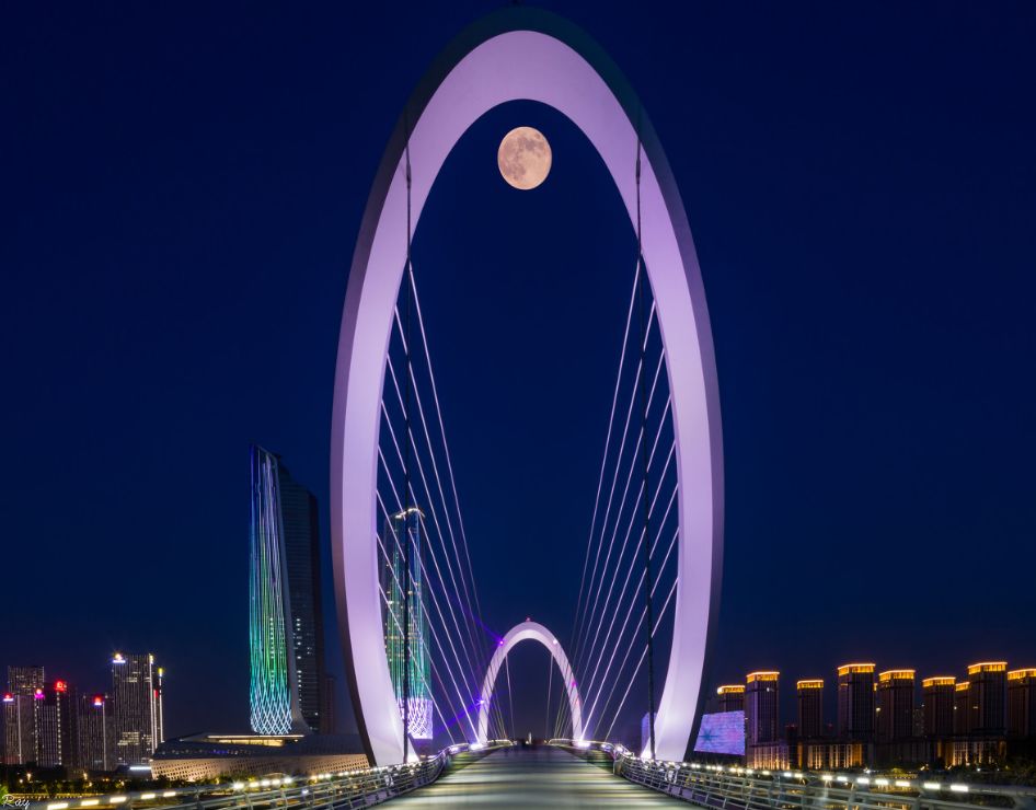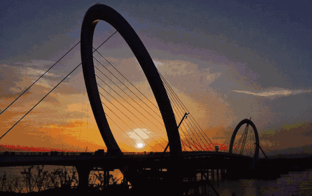 羽翼般斜拉的钢索振翅向上就像竖琴的琴弦,