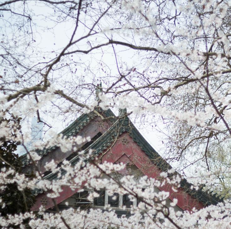 在鸡鸣寺的南门还有一条著名的樱花大道,