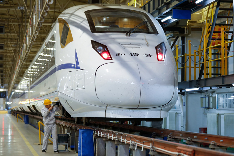 12月5日夜,西安动车段动车组机械师对西成高铁首发车进行检查。