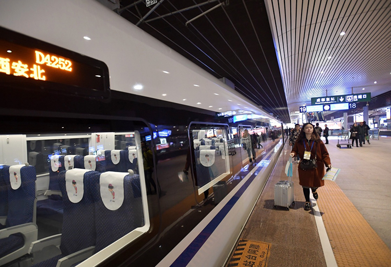 12月6日,在成都东站,旅客准备乘坐成都东开往西安北的D4252次列车。