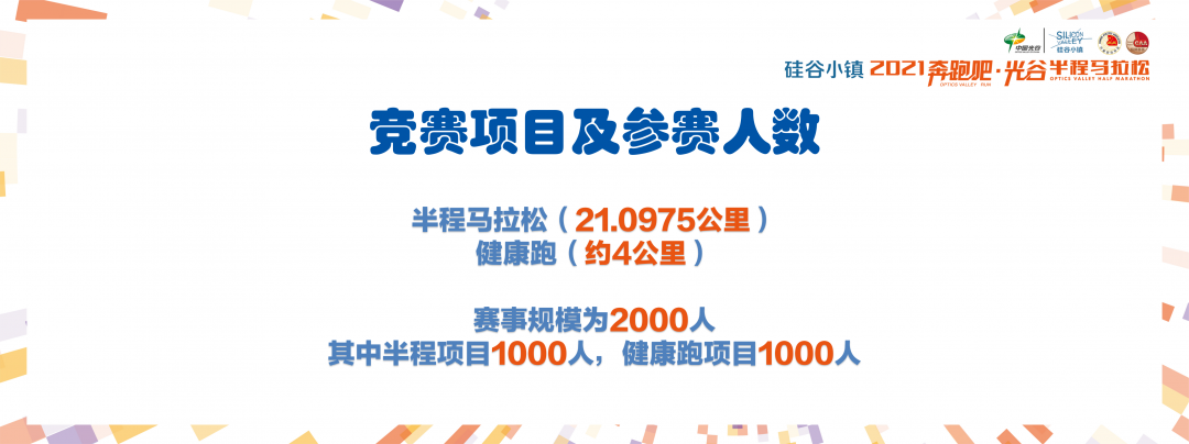 硅谷小镇2021奔跑吧·光谷半程马拉松共设置两个项目,分别是半程马拉松(21.0975公里)、健康跑(约4公里)。