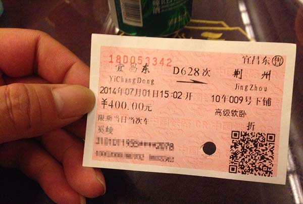 然而,D628的车票实在太抢手了,为了乘坐这趟直达上海的列车,他俩便买了两张宜昌到荆州的高级软卧,这是一段只需33分钟的车程,他们是为了能进站上车后再补票。