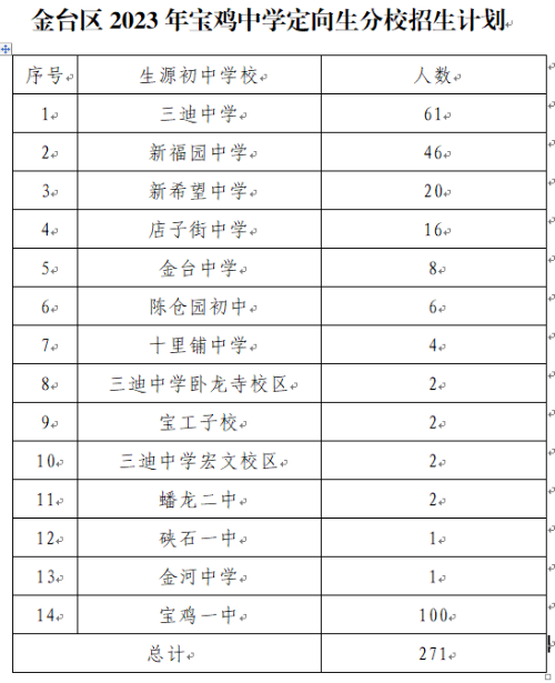 2023年宝鸡市教育局批准我区普通高中招生计划3308名,其中公办招生计划1900名,民办招生计划1408名。具体分校招生计划如下: