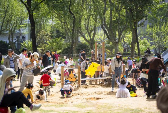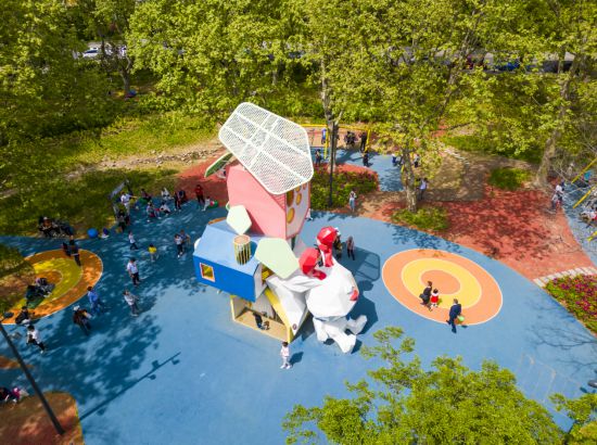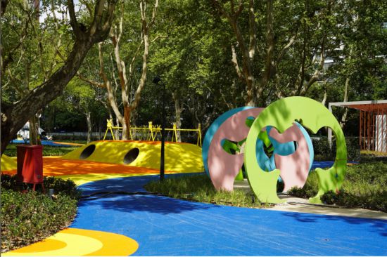 这里有占地约8700平方米的特色沉浸式“儿童友好型”乐园,分为梦境世界、童话世界、沙堡狂欢三大区域,设有滑梯、攀爬、蹦床、秋千、传声筒等多种无动力游乐设施。塑胶场地由蓝、黄、橙三种亮丽的色彩构成,形成森之环、水之环、健身环,满足全龄儿童游乐需求。