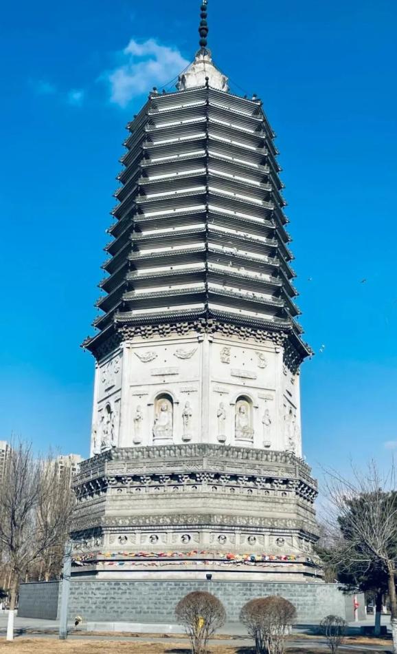 无垢净光塔,位于辽宁省沈阳白塔堡的现代白塔,塔身洁白如玉,因此得名白塔(白塔堡)。塔旁有一庙宇,名弥陀寺寺,故又名弥陀寺塔。玲珑宝塔呈八角形,共七层,这就是所谓的“救人一命,胜造七级浮图”,——“七级浮屠”塔。