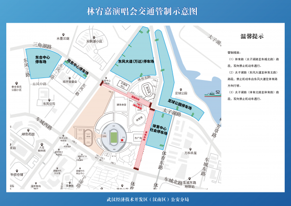 12月7日的17时至22时,体育路(太子湖路至车城北路)路段,双向禁止机动车通行;太子湖路(东风大道至体育北路)路段,禁止机动车由东风大道往体育路方向行驶;太子湖路(体育北路至体育路)路段,双向禁止机动车通行。