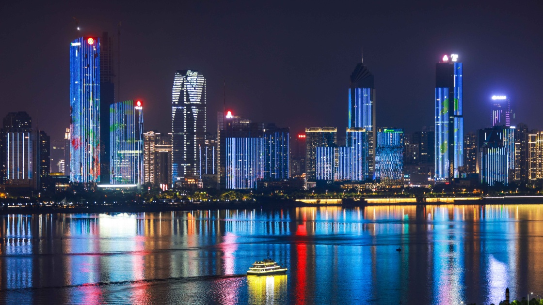 这是在江西省南昌市赣江畔拍摄的LED灯光秀(5月17日摄)。新华社发(马悦 摄)
