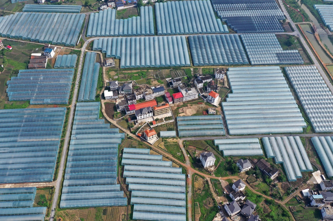 江西省赣州市于都县梓山镇潭头村的果蔬种植基地(2021年4月29日摄,无人机照片)。新华社记者 万象 摄