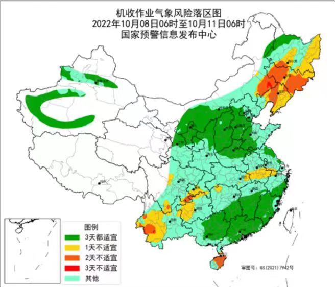 2022年10月8日6时至10月11日6时机收作业气象风险落区图
