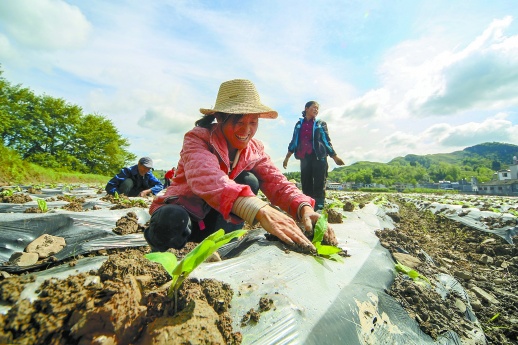2017年5月8日,龙山县召市镇,农民在地里劳作。入夏以来,地处武陵山区的龙山县进入夏季耕种季节,当地农民抢抓天气晴朗的有利时机,积极开展夏种。曾祥辉 彭杰 摄影报道
