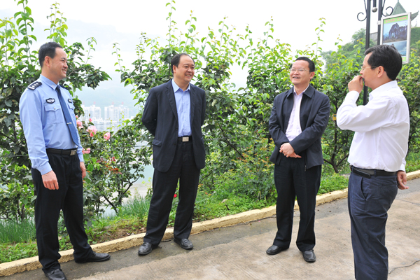 铜仁市委常委、政法委书记、公安局局长张涛(右二)到思南县指导工作,左一为思南县委书记胡洪成;右二为思南县委常委、政法委书记、公安局长史大高。