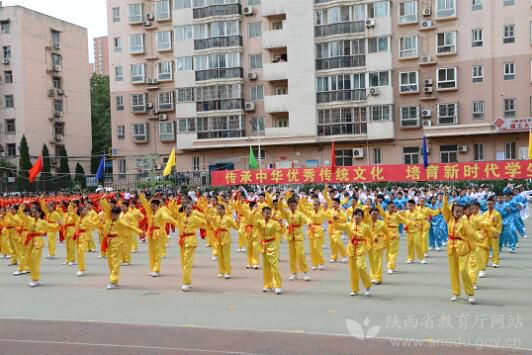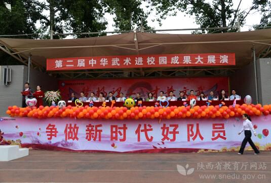 【西安理工大学】5月30日上午,2018年“百城百万儿童习练中华武术·庆六一”大型公益武术展示活动暨西安理工大学子校第二届中华武术进校园成果大展演盛大举行。本次活动由中国关工委健康体育发展中心、国家体育总局武术运动管理中心、中国武术协会在全国各地同时举办,该校作为陕西分会场,格外引人注目。学生方阵着装整齐、动作规范、英姿飒爽、活力十足,朗诵国学经典,展演中华武术,不仅丰富了同学们的校园文化生活,激发了练习中华武术的兴趣,而且进一步增强了班级凝聚力与集体荣誉感。陕西武术协会常务副主席田苏辉、国家高级武术教练徐毓茹、陕西武术运动管理中心办公室主任肖关纪、陕西武术协会办公室主任杨晓波、第十三届全运会武术散打冠军许家恒、碑林区文化体育局局长周琦、碑林区文化体育局青少年体校校长谢亚军、碑林区教育局体卫艺专干茅静、该校相关职能处室负责人等出席展演,部分学生家长到场观看。陕西电视台、西安电视台、华商报、西安晚报、西部网等媒体进行现场报道。同时,子校对本次活动进行了网络直播,36000余人收看。据悉,近年来,该校积极开展中华武术进校园活动,武术教育已自成体系,开设武术课程,编发《十二生肖拳》校本教材,组建中小学武术队,全校普及中国武术段位制段前1至3级,同时定期聘请省市武术名家来校指导。该校被评为推广武术段位制进校园先进工作单位,成为中国武术段位制初级段位考试点。目前,全体学生均已获得初级段位段前级证书,武术教育已成为该校一张亮丽的名片。