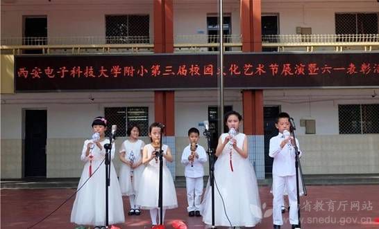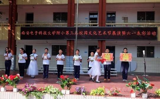 【西安电子科技大学】5月31日上午8时,我校全体师生齐聚学校操场,举行了第三届校园文化艺术节展演暨庆六一表彰活动。此次表彰活动表彰了市级先进班集体、市级三好学生、校级三好学生、优秀少先队员等。表彰活动不仅是对优秀集体和个人表现的一种肯定,更是为西电附小的少先队员们树立了榜样,使孩子们度过了一个有意义的节日!为了增添欢乐的节日气氛,文艺节目展演穿插在表彰活动中,啦啦操、诗朗诵、器乐演奏、舞蹈、英语剧、武术、击剑展示、花样跳绳等节目丰富多彩,精彩纷呈……孩子们精彩的表演,把欢乐的气氛推向一个又一个高潮。除了文艺节目展演,本届校园文化艺术节还对同学们的摄影作品、绘画作品、书法作品进行了展览,让同学们在校园内欣赏到优秀的艺术作品。此次庆六一活动,不仅增强了少先队员的光荣感和自豪感,也充分展示了新时代少先队员朝气蓬勃、健康向上的精神风貌!
