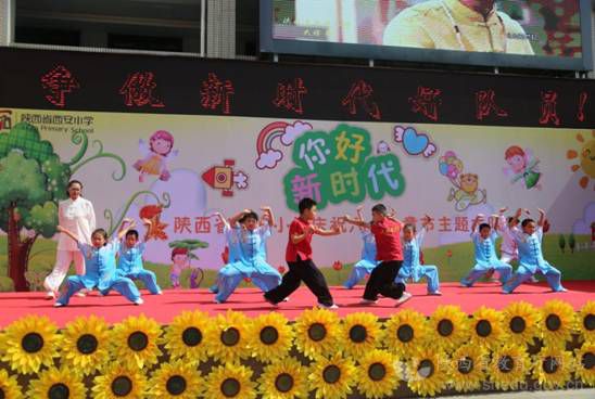 【西安小学】该校举行“你好 新时代”六一儿童节主题大队会。本次活动分为三个篇章“新时代西小律动、新时代西小古韵、新时代西小风采”分别来进行展示。第一篇章“新时代西小律动”通过活力、动感的啦啦操、斗舞、精致、优美的芭蕾舞、拉丁舞、律动的篮球表演来展现学生积极健康、阳光自信的面貌。第二篇章“新时代西小古韵”通过京剧《红灯记》《苏三起解》,豫剧《花木兰》,陶笛《小星星》《掀起你的盖头来》《苏珊娜》、武术《少林英雄》及歌曲演唱《赵子龙》等表演。第三篇章“新时代西小风采”通过校园歌手大赛推选出的13首多类别的歌曲串烧、教师代表演唱《送你一个长安》,管乐团演奏《爱尔兰的传说》、情景剧《稻香》歌伴舞《彩虹的约定》。