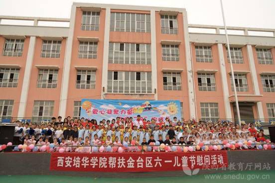 【西安培华学院】“爱心凝聚力量,真情培你成长”。为进一步推进“双百工程”工作,近日,西安培华学院帮扶宝鸡市金台区“六一”儿童节慰问活动走进金台区蟠龙镇中心小学。活动由“建立一个爱心图书室、捐赠一批文体用品、送上一台文艺节目、进行一场安全知识培训”等项目组成。学院团员干部、扶贫专干王灏然及30余名志愿者前往慰问。共青团金台区委书记宋鸽、金台区教体局副局长陈雅琴和蟠龙镇中心小学校领导、全体师生参加了活动。活动在蟠龙镇中心小学运动场举行。孩子们为参会领导及嘉宾佩戴了红领巾,该院团委书记蔡亮介绍了此次慰问活动项目及捐赠情况,蟠龙镇中心小学校长致感谢辞。简单的捐赠仪式过后,共青团金台区委为西安培华学院赠送了锦旗。此次活动学校为蟠龙镇中心小学筹建爱心图书室,首批捐赠图书300余册;为孩子们赠送了50套书包文具和50件体育用品;学院表演团队为孩子们带来精彩的文艺节目,包括汉服展示、吉他弹唱、魔术互动、武术表演等;培华志愿者服务队还为小学生讲解并现场演练生活急救常识。据悉,该院从2017年底启动金台区留守儿童关爱项目,由学院团委牵头,青年志愿者联合会、红十字会等组织对金台区260多名留守儿童开展送温暖活动,通过“一对一”结对,开展写信鼓励、定期看望、赠送礼物等活动。此次慰问是该项目的延伸和拓展,学院院将一如既往地开展好这一爱心工程。
