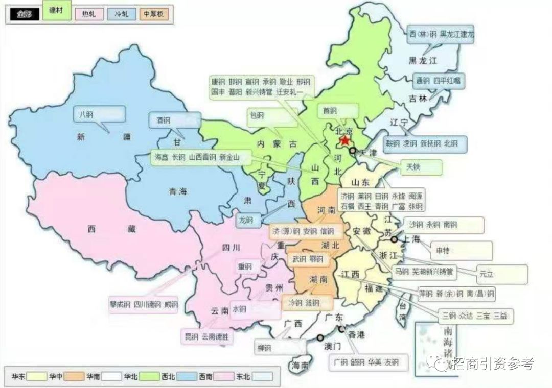 钢铁是很多产业的基本原材料,为了帮助大家认识我国钢铁产业分布情况,招商引资内参(微信号zsyznc)选取以下图解供大家参考。主要是三大类:1、全国各大钢铁厂分布地图2、我国各省钢铁厂产能汇总及分布图3、我国东部沿海各钢铁厂产能及分布图。