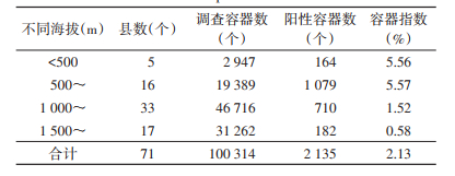 表 6 云南省不同海拔伊蚊孳生情况比较 Table 6 Comparison of Aedes breeding between different altitudes in Yunnan province