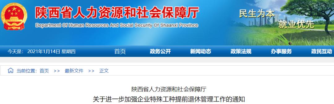 原标题:《陕西省人力资源和社会保障厅关于进一步加强企业特殊工种提前退休管理工作的通知》