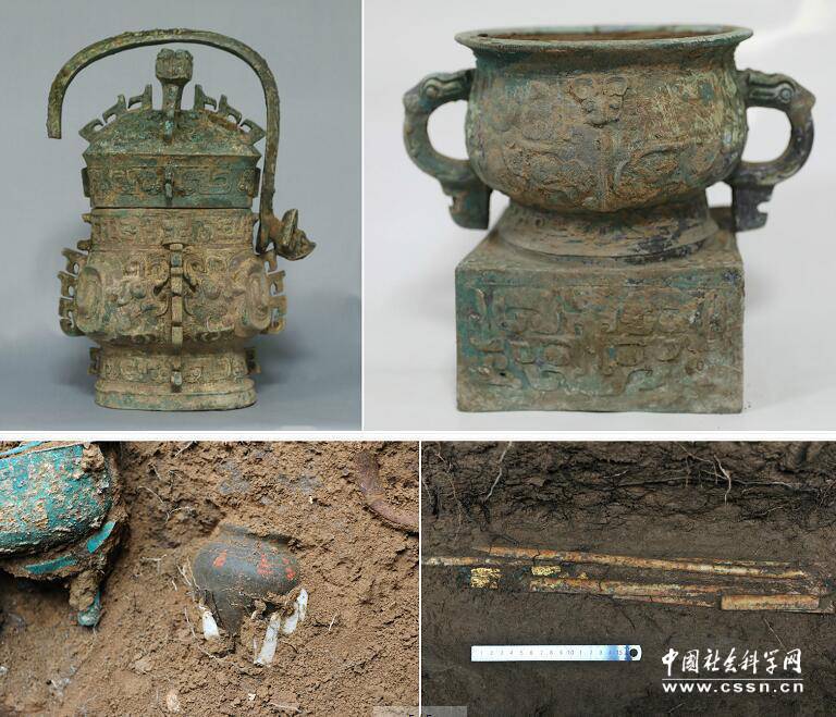 旭光村西周墓葬规划有序,同一级别墓葬呈“一”字形排列。根据墓葬形制、随葬器物及铜器铭文,墓主身份应该是姬姓高等级贵族。各墓葬随葬器物各具特色,如M2发现的原始瓷瓿是目前陕西发现较早、较完整的一件,可能来自南方地区;M3随葬大量车马器;M4出土金箔饰,金制品一般多见于北方草原地区,关中西周墓葬中极为罕见。