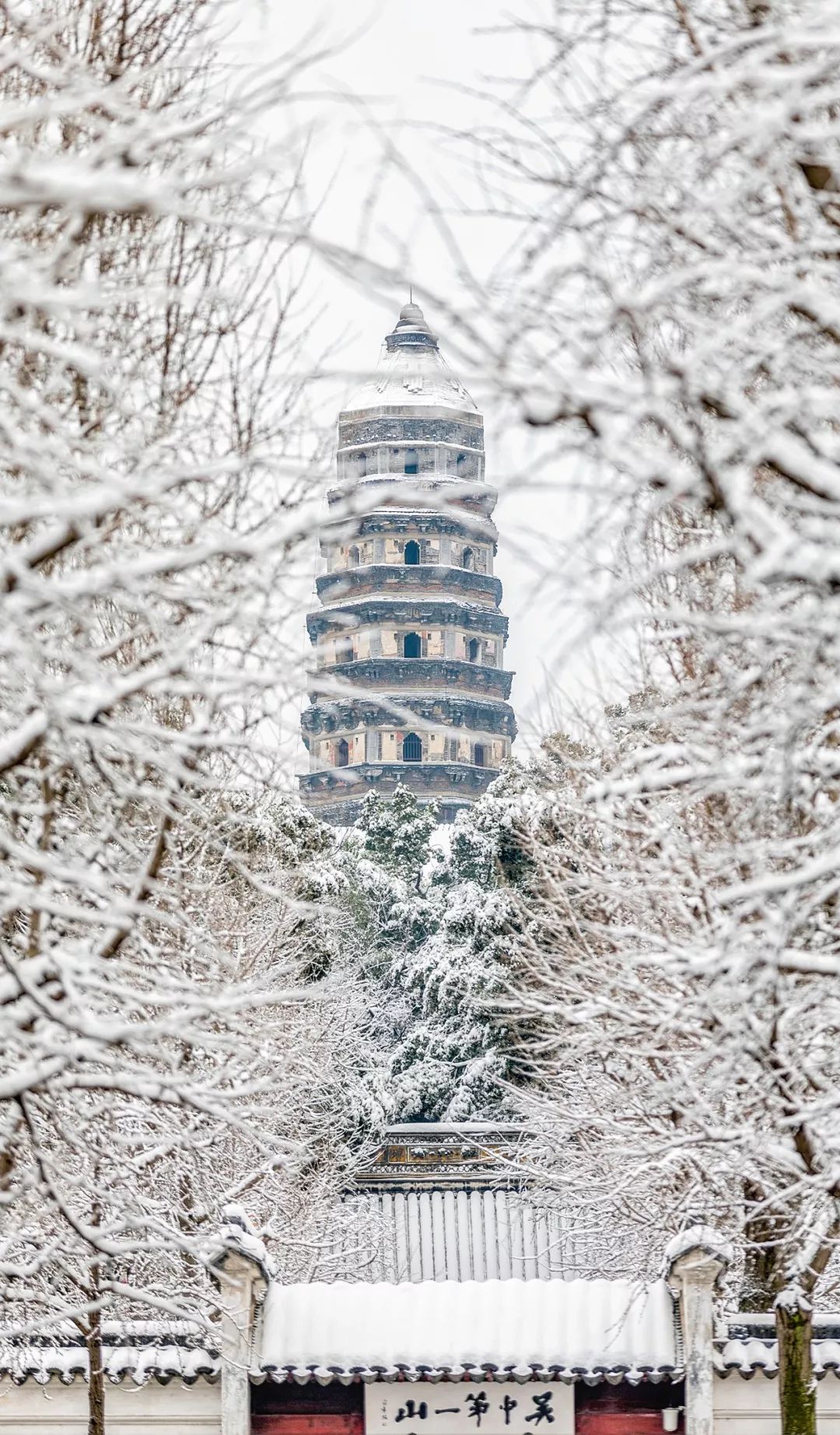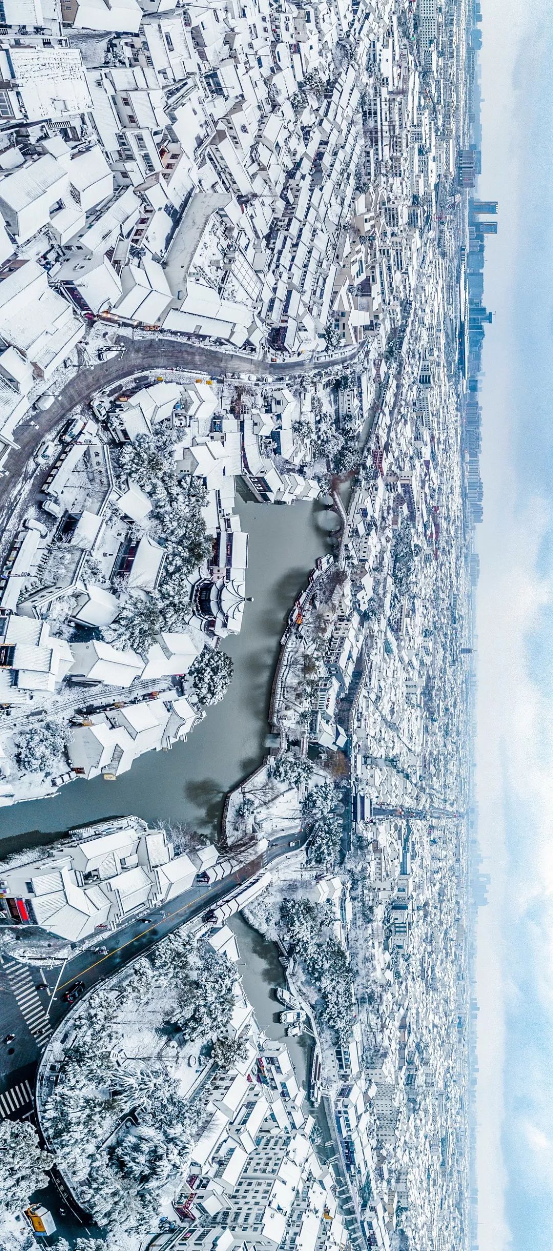 (请横屏观看,阖闾大城后称吴郡,隋朝时首次改名苏州;目前阖闾大城的真实位置仍存在争议,本处援引《苏州市志》观点;下图为雪后的苏州城,图片来源@VCG)