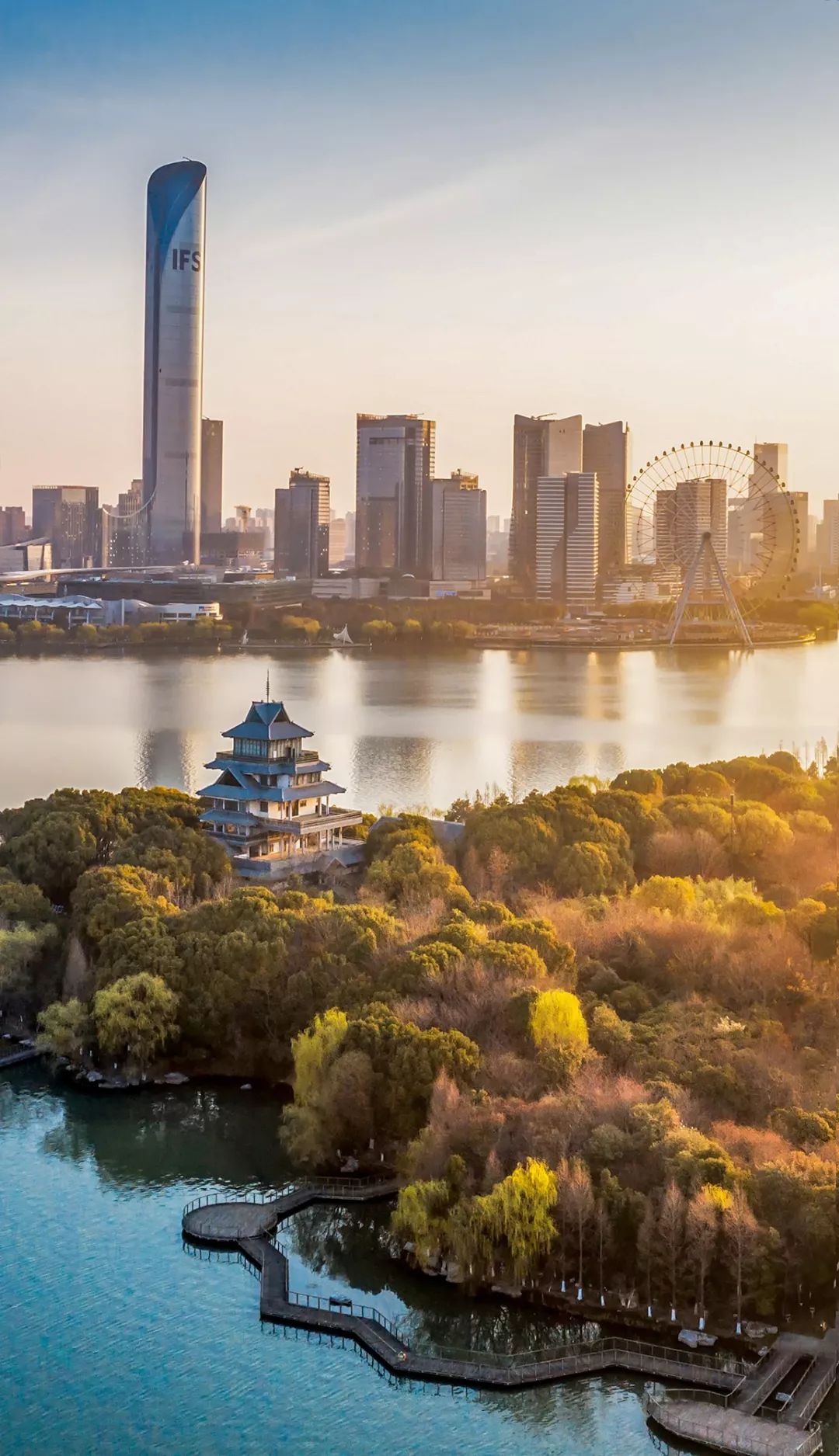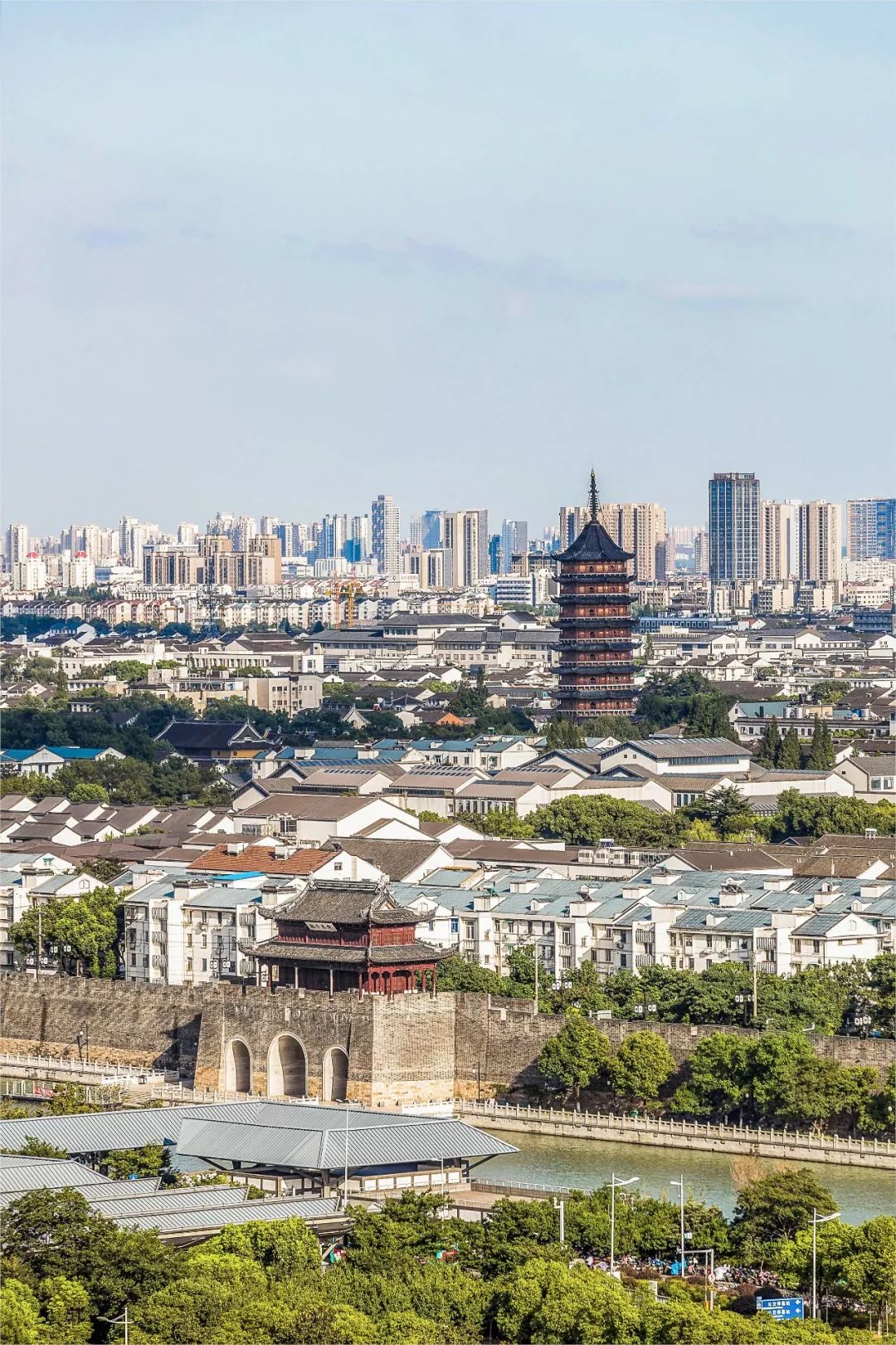 (近处的苏州古城和远处的苏州工业园区,摄影师@维生素)