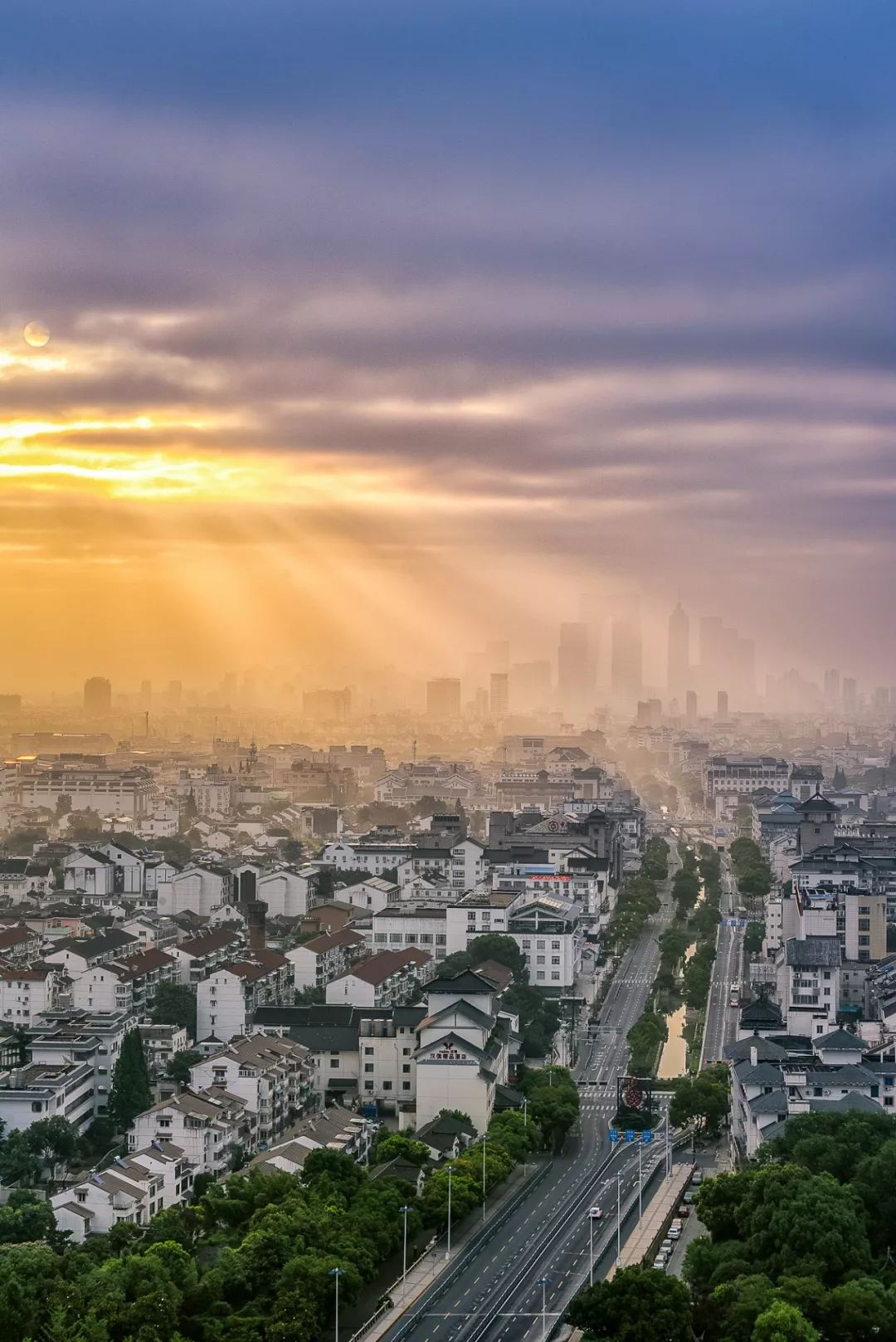 (阳光下的苏州城,远处的新城区若隐若现,摄影师@田春雨)
