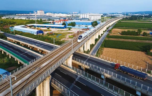 在宝鸡高新区杨家店村,看高速公路与高铁交会