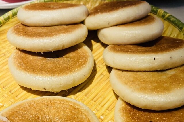 芝麻饼,一种面食。因其饼面遍撒芝麻,故而得名。以面粉、芝麻、糖、鸡蛋、食用油等为原料加工而成,具有甜美可口、香味浓郁、酥松易化等特点。芝麻饼趁热吃坚韧、鲜香,烤干吃酥脆可口。不仅是访亲问友的礼品,而且多做长途旅行、老人孩子、孕妇的干粮,长期食用干芝麻饼尚有开胃健脾之功效。芝麻饼在回民街随处可见,是西安人喜爱的美食小吃,其中又以塞上天娇芝麻饼和贵妃酥麻饼极富盛名,如果西安旅游不知道带什么特产回去,芝麻饼也是个不错的选择! 【 详细>>】