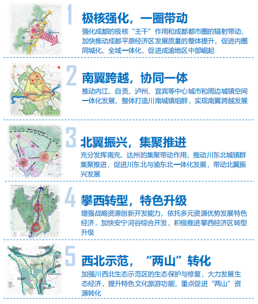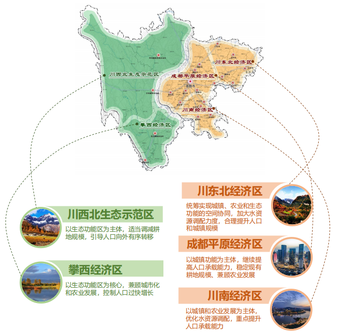 目前,四川省全面贯彻新发展理念,重点落实成渝地区双城经济圈和省委“一干多支”发展战略,着力处理好保护与开发的空间关系,在资源环境承载能力和国土空间开发适宜性评价的基础上,实施西部保育培育,东部优化提升的国土空间开发保护战略,优化主体功能区布局,统筹划定三条控制线,科学调整土地利用结构,形成生态优先、高质量发展的国土空间新格局。