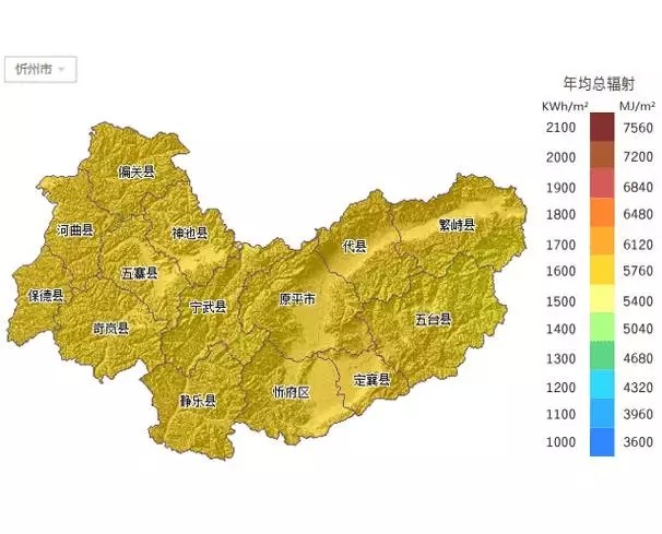 忻州市——年均总辐射: