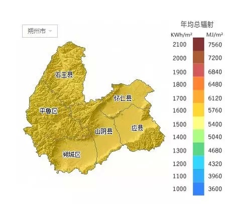 朔州市——年均总辐射: