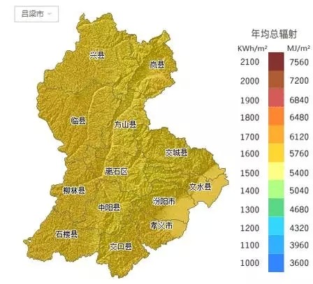 吕梁市——年均总辐射: