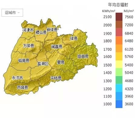 运城市——年均总辐射: