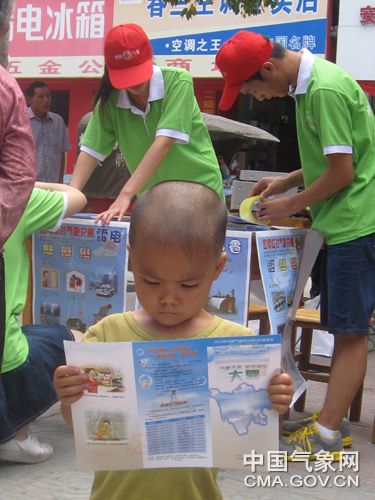 中国气象报通讯员通讯员卜晓娜 赵斐苗 陈海成报道 7月17日至18日,“2013年气象防灾减灾宣传志愿者中国行”走进河南。来自成都信息工程学院的大学生志愿者们冒酷暑天气,进社区、到村镇,在河南省安阳市处处留下了热心传播气象科普的忙碌身影。