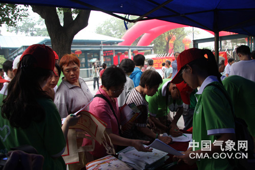 上午9时许志愿者们顶着烈日在活动现场开展宣传活动,有的向市民发放宣传材料,有的热情解答市民关于气象知识方面的提问,有的倡导市民签名支持活动,还有的开展气象服务方面的调查问卷填写。青春洋溢的大学生志愿者们的身影成了一道道亮丽的风景线,越来越多的市民参与到活动中来,并引发媒体的关注。市民们纷纷表示,掌握气象防灾减灾知识也是建设美好家园的重要保障。