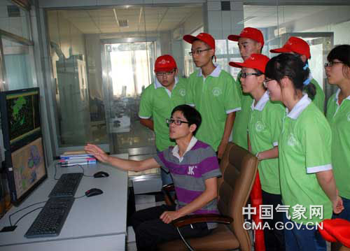 气象技术人员为志愿者们讲解工作流程。孙镆涵 摄影