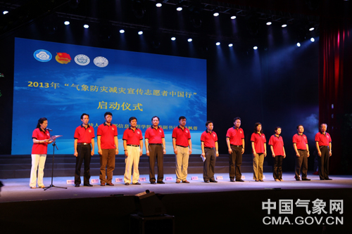 据悉,“2013年气象防灾减灾宣传志愿者中国行”活动主题为“美好的家园,共同的梦想”。启动仪式后,陕西分队的志愿者将分赴社区、建筑工地、农村开展气象科普知识宣讲,提高全民气象防灾减灾意识和应对、适应气候变化的能力。