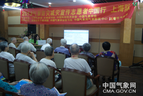 中国气象报记者王瑾 通讯员徐建中报道 气象防灾减灾宣传志愿者中国行上海队7月20日和22日在上海市徐家汇教堂广场、徐汇区久康养老院开展了气象科普宣传活动,正式拉开了“2013年气象防灾减灾宣传志愿者中国行上海队”在上海地区的活动序幕。