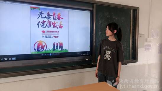 宝鸡市斗鸡中学学生何佳鑫向学生们讲述毒品的危害性