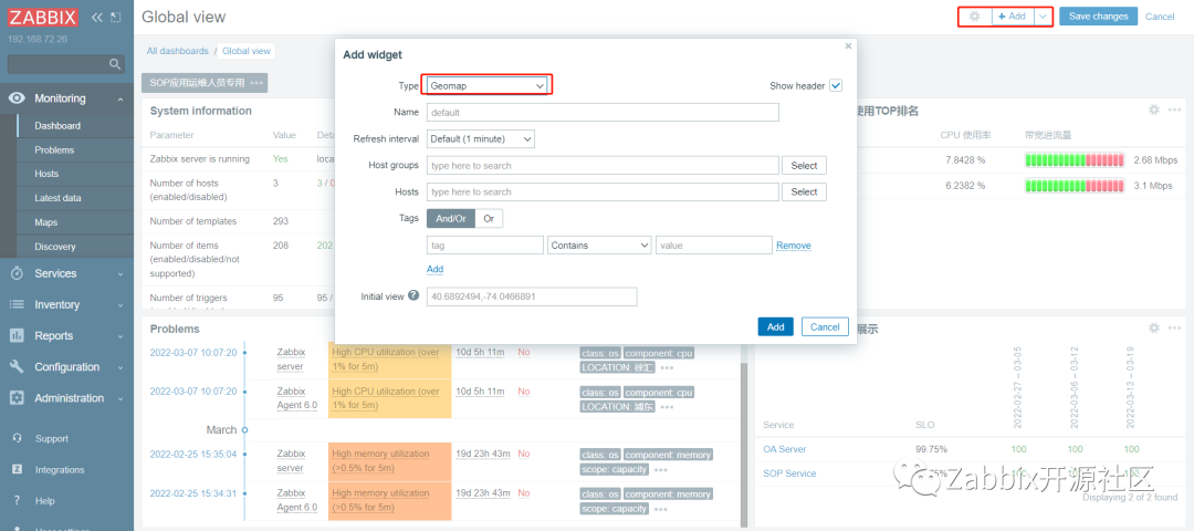 如果环境无法连接外网可以在局域网内搭建一套离线版本的中国、世界地图,Zabbix 6.0 支持用户自定义的map源。
