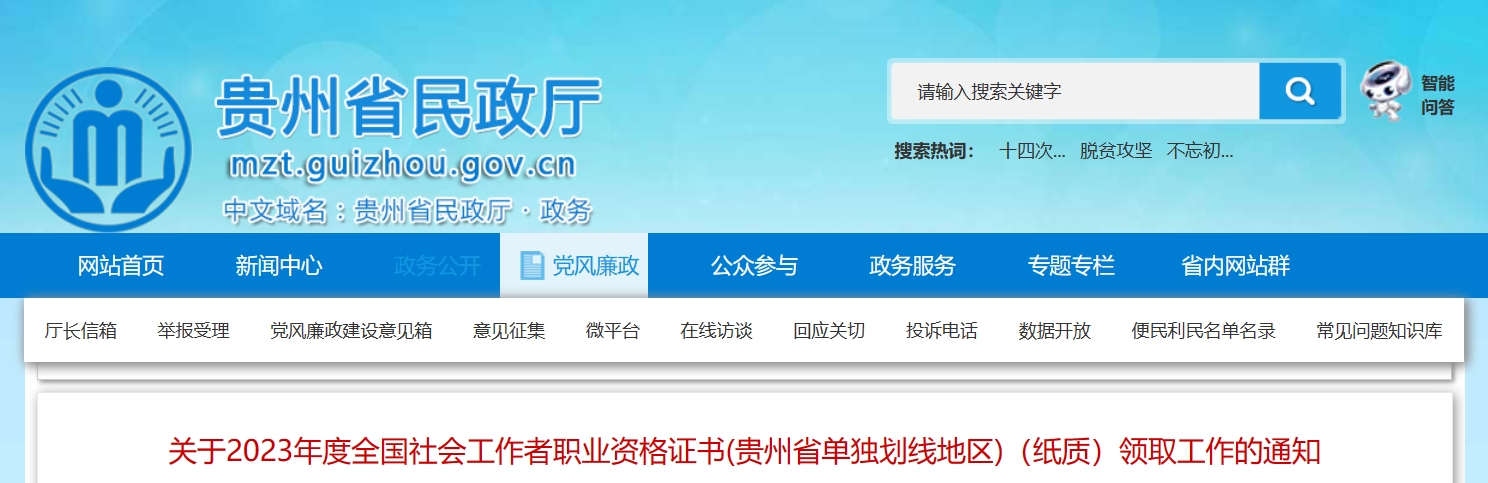 贵州省民政厅:2023年社会工作者职业资格证书(贵州省单独划线地区)领取通知