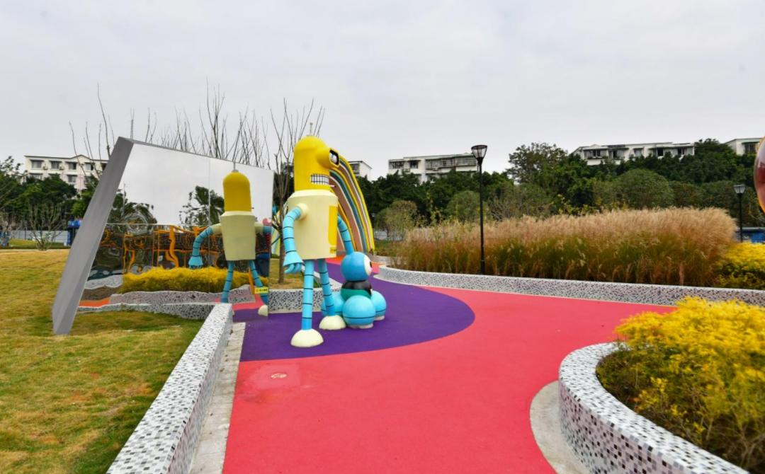 得趣公园结合童梦元素,营造出童梦乐园、星球廊架、阳光草坪及风动艺术廊架等具有趣味性、生态性的活动场景。这里不仅有太空元素的主题场景,让孩子们在玩乐中接触科学知识的同时,还能满足孩子们的娱乐需求。值得一提的是,公园安装了智能健身器材,利用太阳能发电,具备数据统计和处理功能,让市民在运动的同时实时了解自己的健身数据,节能又环保。