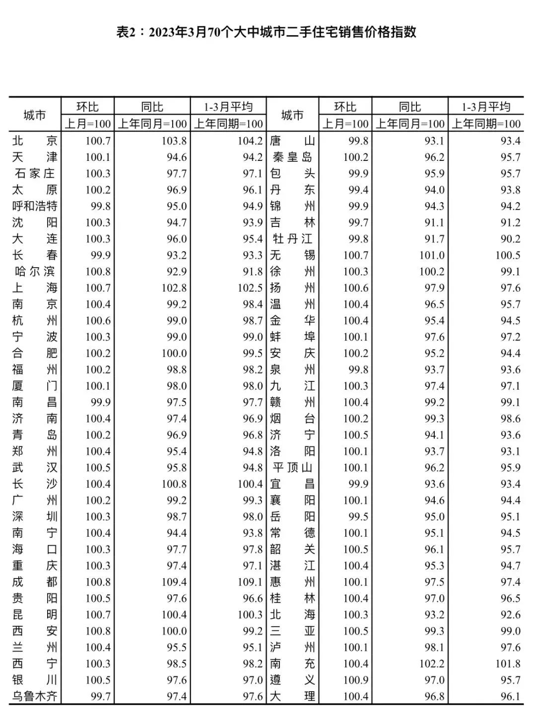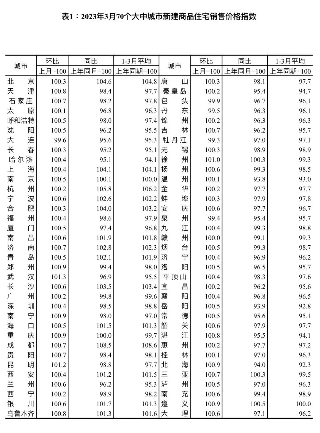 2023年3月份,70个大中城市中商品住宅销售价格上涨城市个数增加,各线城市商品住宅销售价格环比上涨,一线城市商品住宅销售价格同比上涨、二三线城市同比降幅收窄。