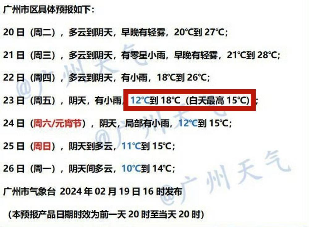 为何气象部门在已经发布最低和最高气温的同时,还要特别向公众告知“白天最高气温”呢?据悉,这是气象部门按照气象数据发布要求的同时,对因冷空气带来的气温变化向市民发出的特别提示。在强冷空气即将影响前,广州市气象部门提醒市民做好防寒保暖措施。