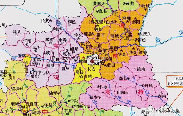 一转眼到了40年代末期,随着大规模战争的基本结束,我国进入了战后重建、恢复生产、发展经济的时期。出于实际管理的需要,陕西省被临时划分为陕北行署区、陕南行署区。过分复杂的区划并不利于经济建设,陕北、陕南行署区被撤销,重新合并为陕西省,并且组建了各个专区。