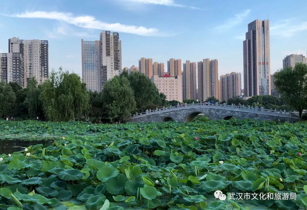 月湖因古代却月城而得名,明成化年间,汉水改道,其主流经龟山北部汇入长江后留下月湖。,仲夏荷花盛开,栈道深入湖心,美不胜收。