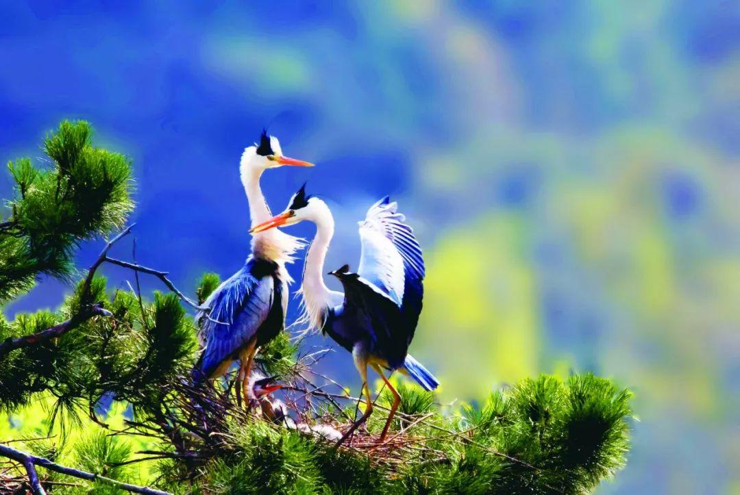 平山县苍鹭峰自然生态风景区古松上栖息的苍鹭。