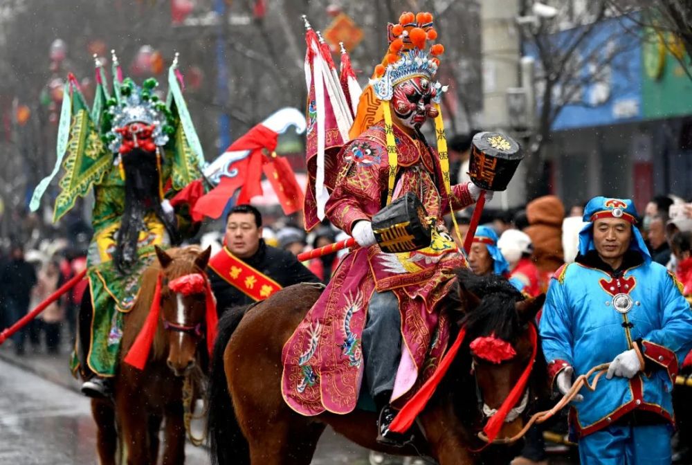 陕西省宝鸡市陇县社火巡游活动上,马社火在进行表演。新华社记者刘潇 摄