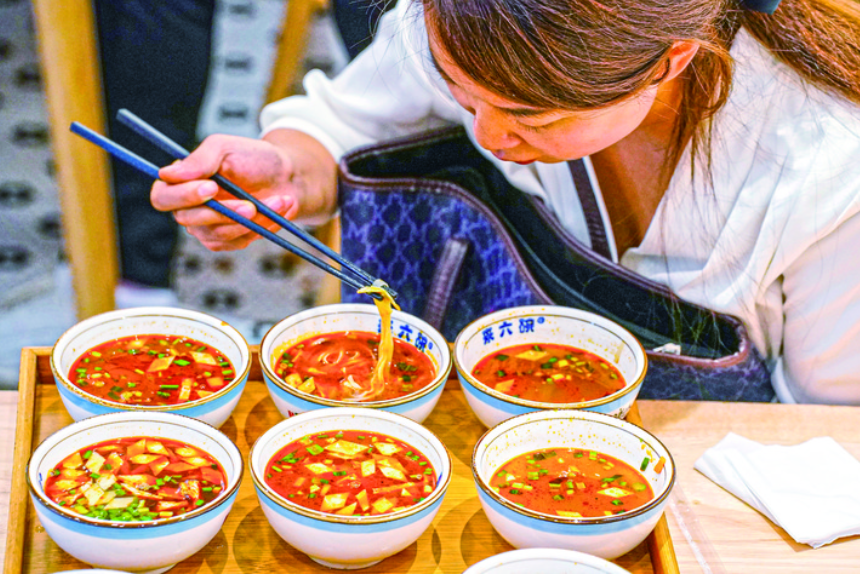 顾客在一家岐山臊子面餐馆内品尝臊子面。新华社记者 邵瑞摄